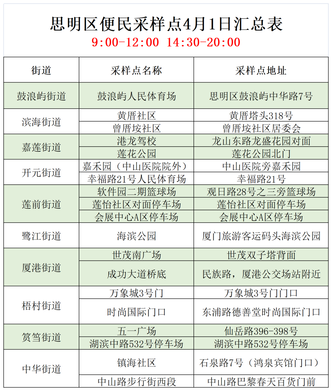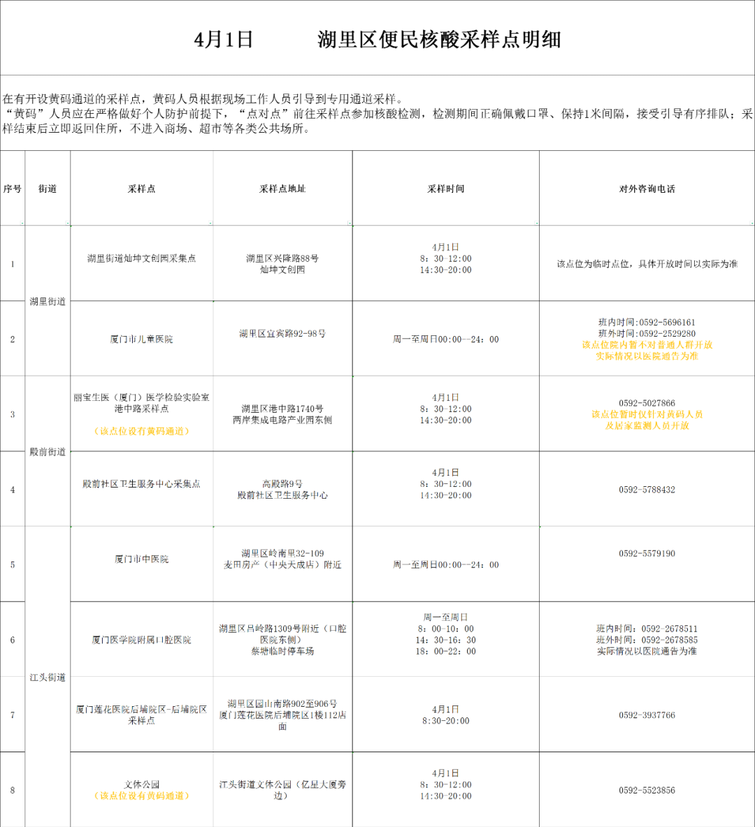 2022年4月1日厦门六区免费核酸检测点汇总(最新)