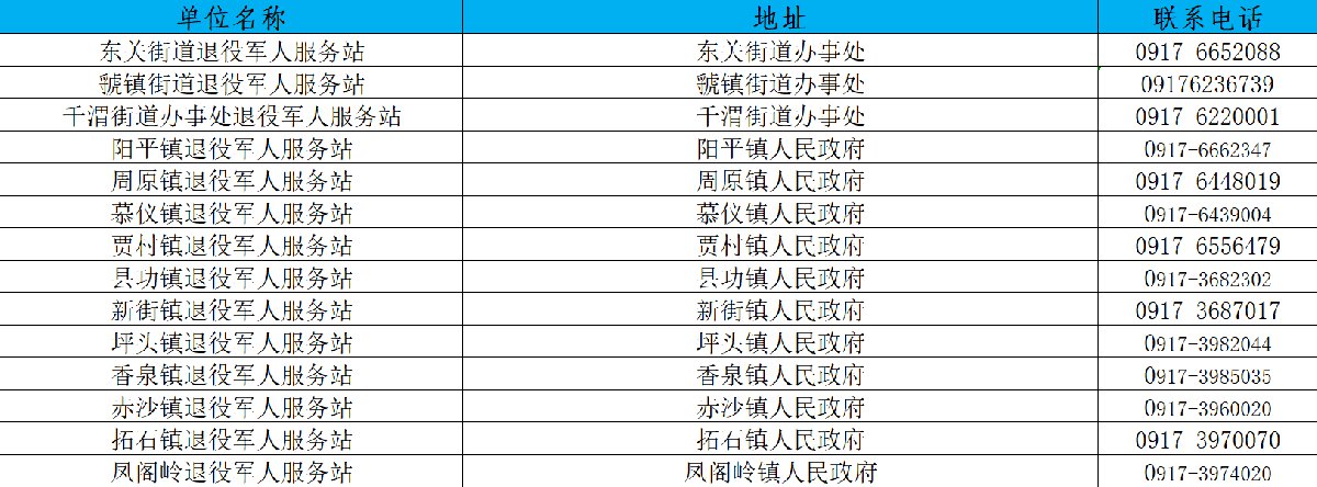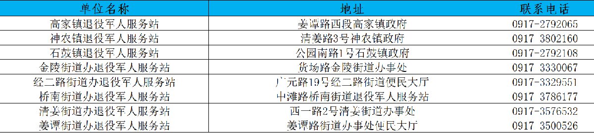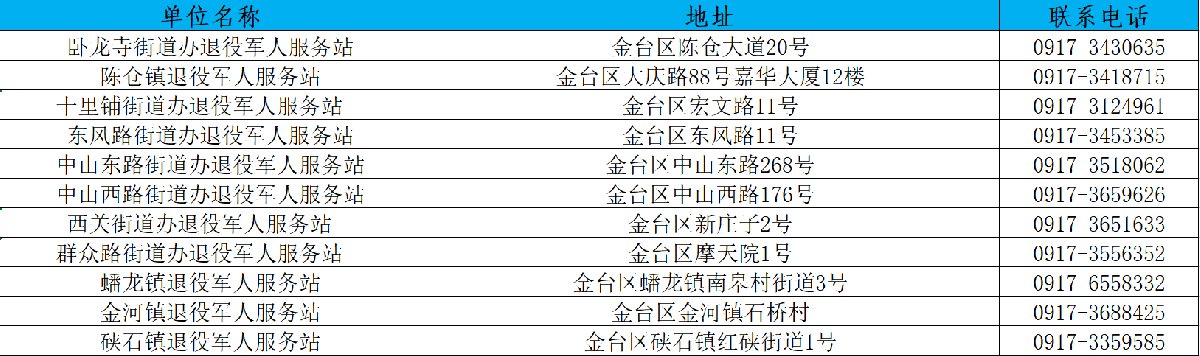 宝鸡市各街道(镇)退役军人服务站优待证办理点汇总