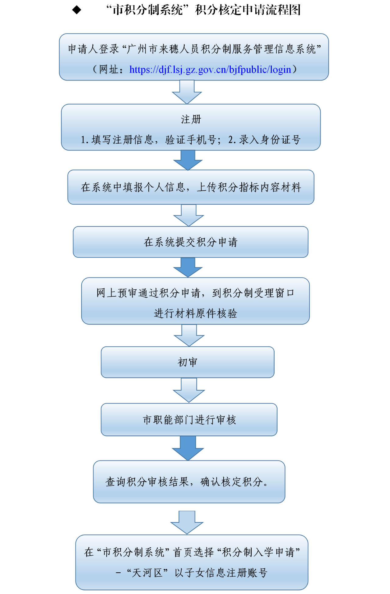 对申请人申请资格及“天河区积分指标”材料情况进行网上审核。