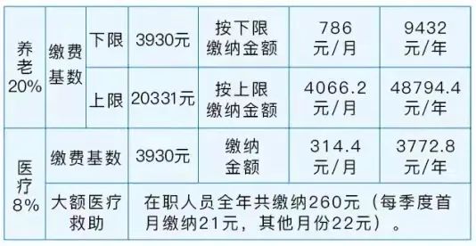 每月养老(下限)+医疗=1100.4元+大额医疗救助