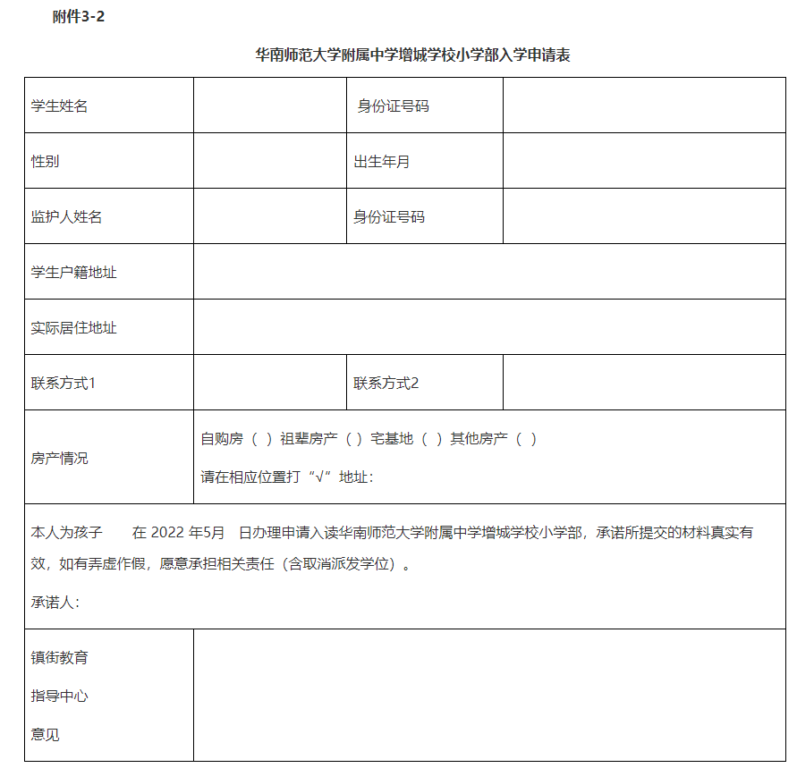 3-2.华南师范大学附属中学增城学校小学部入学申请表