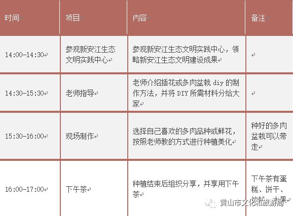 参观新安江生态文明实践中心,体验裸眼360球幕影院,多肉绿植或插花DIY,蛋糕DIY制作,体验湖边古村落隐阅书屋,游大美新安,品徽风美食。