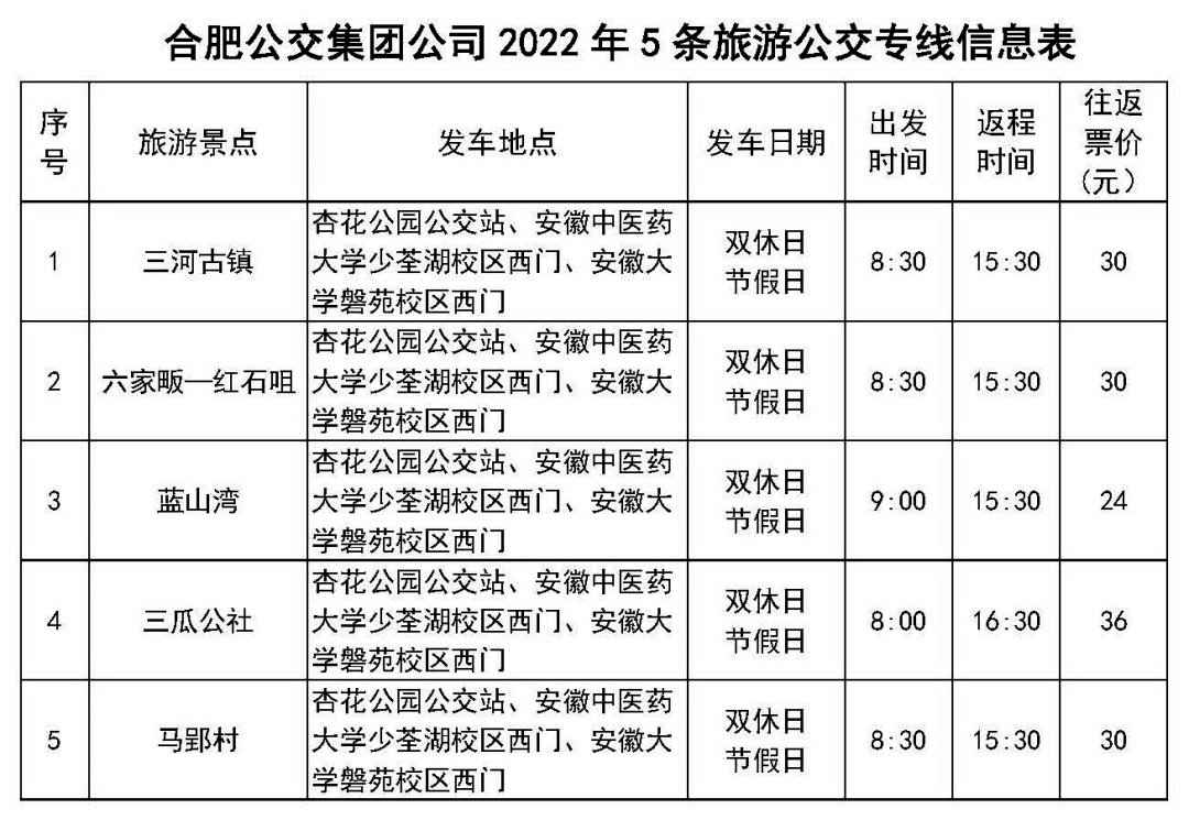 2022年3月5日起,合肥将开行5条旅游公交专线。