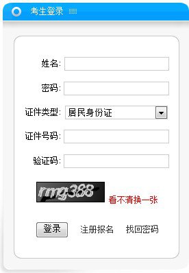 3)通过首页考生登录窗口的“注册报名”功能,取得考生个人帐号和密码。