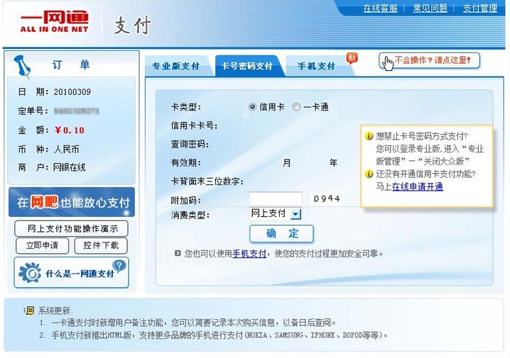 选择网银支付如图9所示,招商银行的支付页面(如图10所示),成功支付页面(如图11)。所示各家银行的支付页面不相同,请按照各银行的提示进行相关操作: