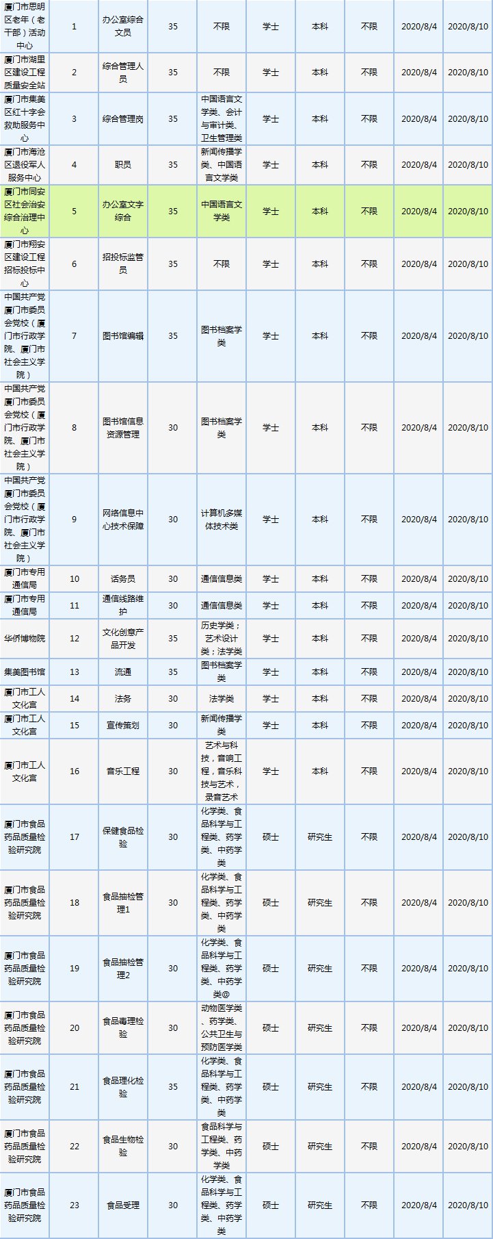 2020厦门事业单位招聘公告