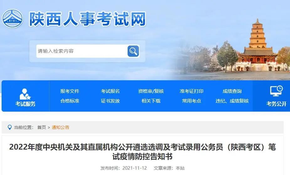 为落实新冠肺炎疫情防控常态化要求,做好2022年度中央机关及其直属机构公开遴选、选调及考试录用公务员笔试疫情防控工作,确保广大考生和考试工作人员生命安全和身体健康,根据目前国家和陕西省新冠肺炎疫情防控工作相关规定,现将疫情防控措施告知如下: