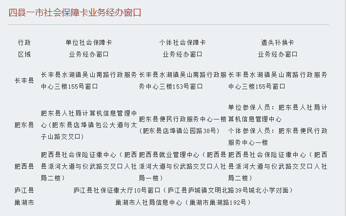 合肥市社会保险服务中心二楼(政务区政务环路88号)1号、2号、3号窗口