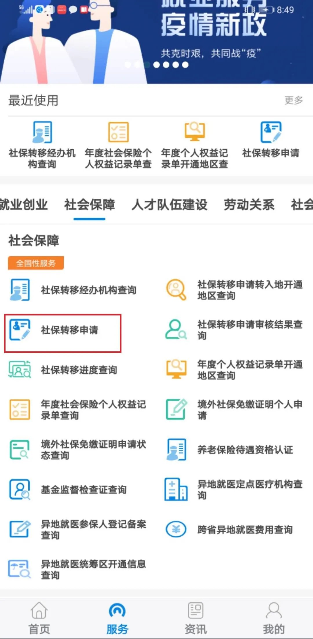 小贴士:也可使用“掌上12333”APP进行注册办理,选择“社保转移申请”,填写个人信息,提交申请。转入区不要选错呦!