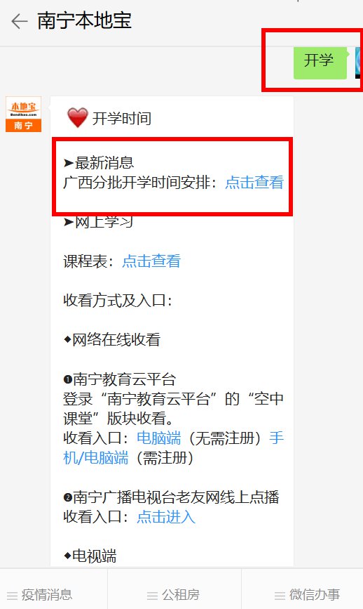3月18日,广西壮族自治区新型冠状病毒感染的肺炎疫情防控工作领导小组指挥部发出《关于印发广西高三初三年级2020年春季学期开学工作方案的通知》,通知明确 :全区高三、初三年级于2020年4月7日正式开学。要求学校要把大班额划分成小班额上课,班级之间教室要相对隔离。做好学生住宿安排,适当拉开学生床位间隔。制定错时作息表,实行错峰上课、错时分餐、分散用餐。
