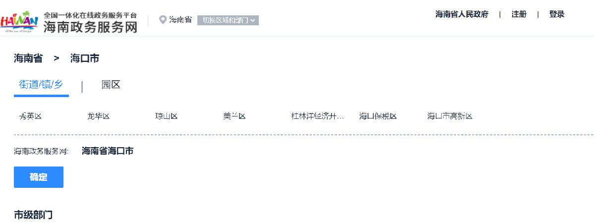 第一步:登录海南省政务服务网,区域切换至海口市江东新区;