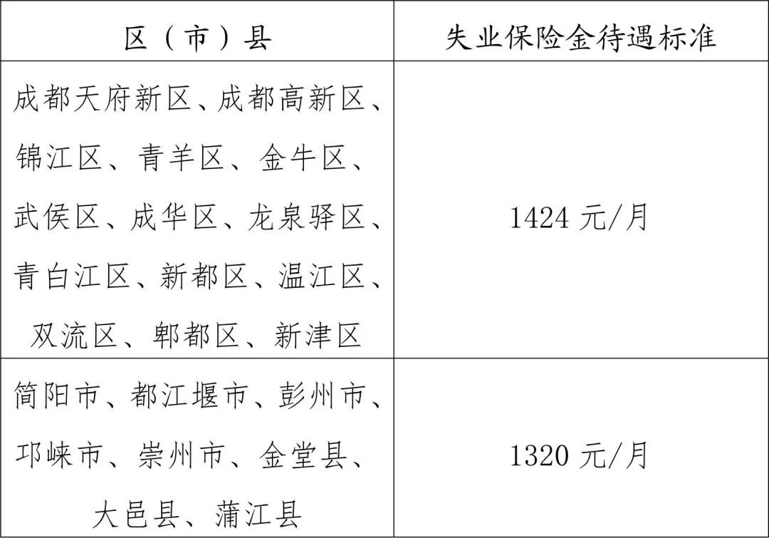 各区(市)县失业保险金待遇标准