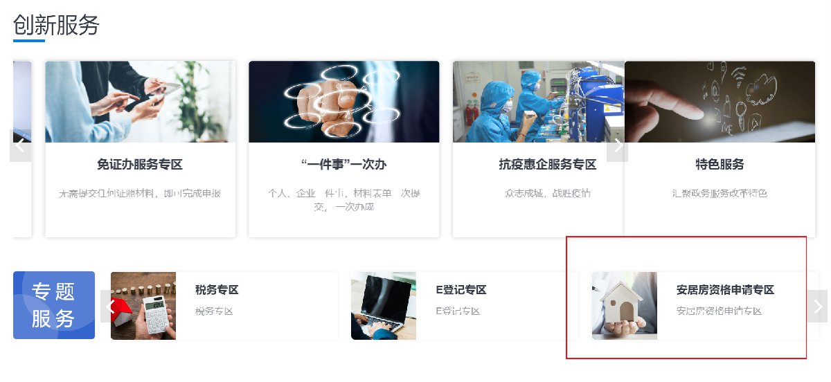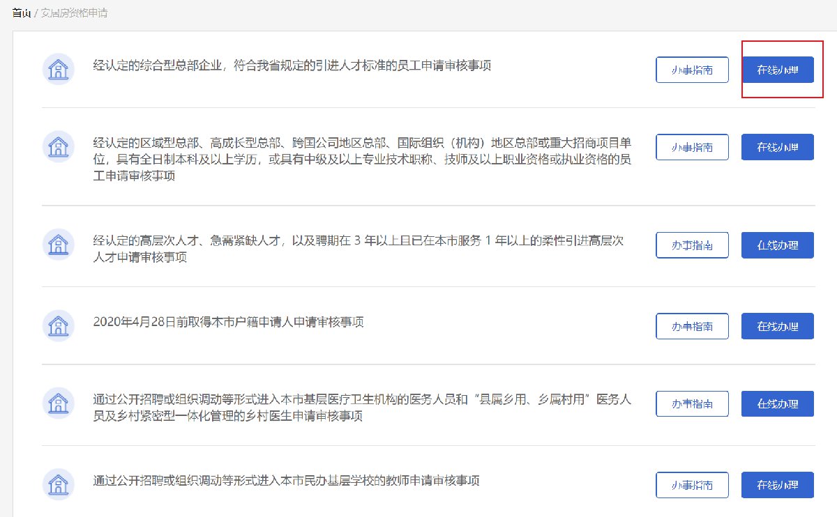 3、点击进入后,根据自己满足的条件选择相关板块,点击“在线办理”提交相关材料即可。