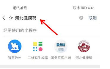 在小程序搜索界面,搜索“河北健康码”