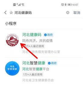 点击进入小程序“河北健康码”