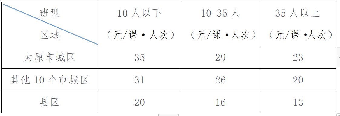 二、线下培训收费标准。面向义务教育阶段学生培训上限基准收费标准按照行政区域、班型划分,详见附件。面向普通高中学生培训上限基准收费标准按照行政区域、班型划分,详见附件。浮动幅度,上浮不得超过10%,下浮不限。标准课时长为45分钟。