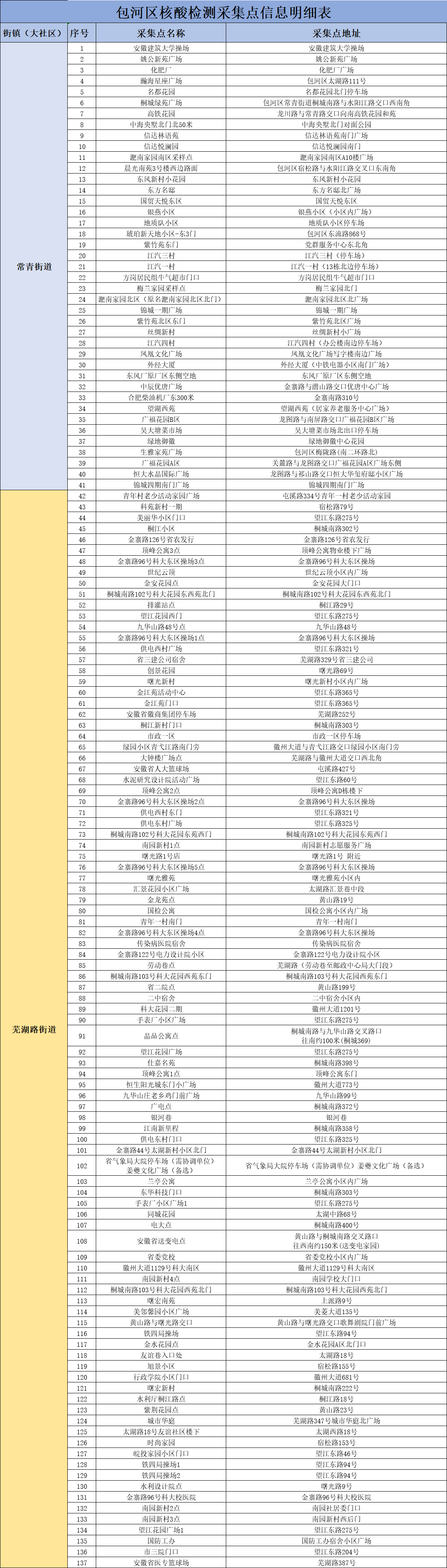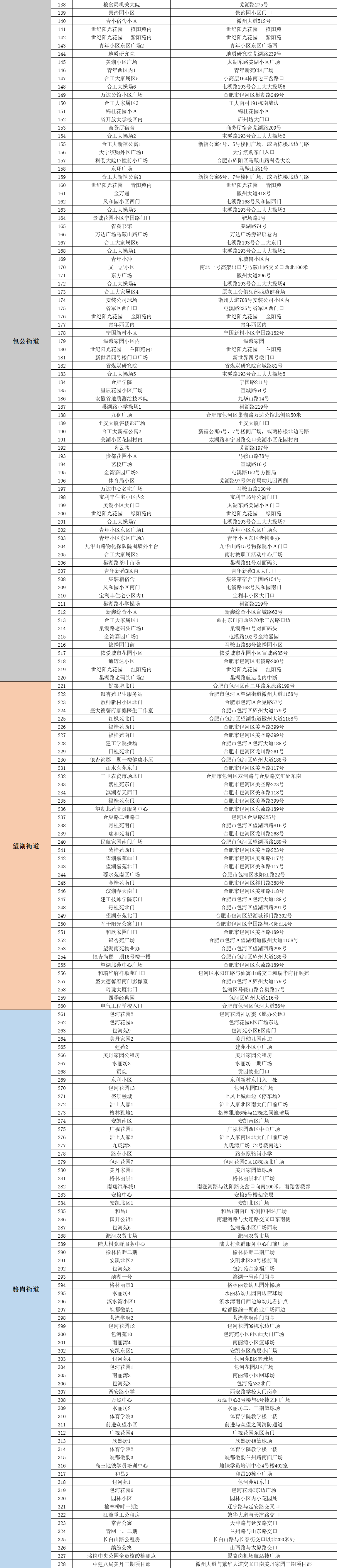 4月22日合肥包河区全员核酸检测点分布: