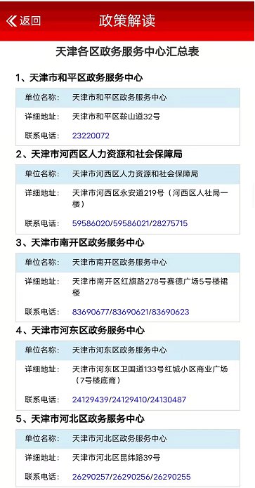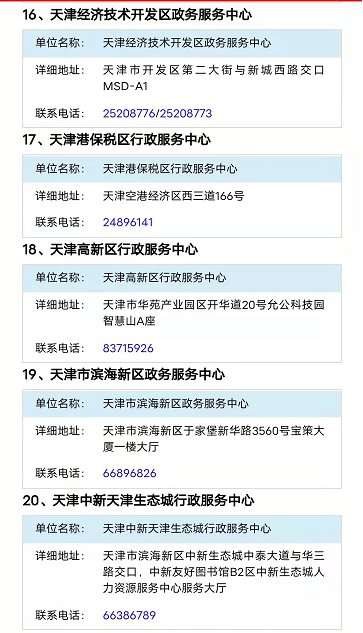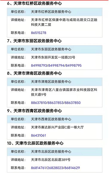 附:天津各区政策服务中心汇总表