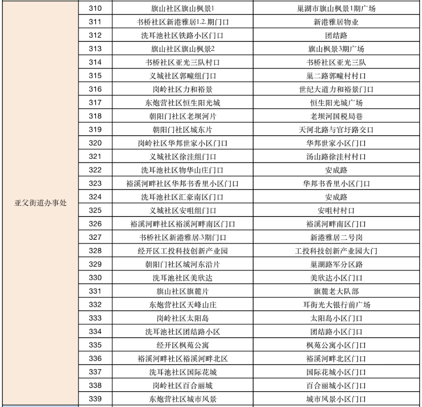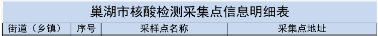 4月23日巢湖亚父街道全员核酸检测采集点: