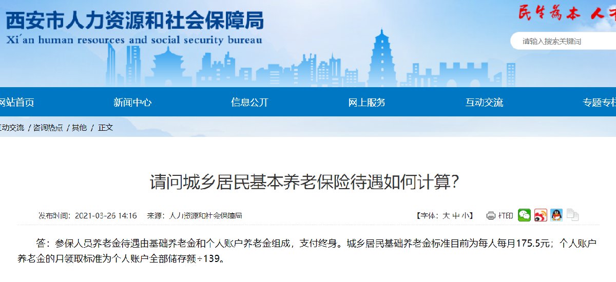 西安居民养老金每月能领多少