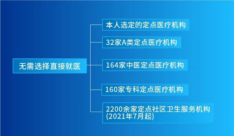 目前,北京市共有2900余家基本医疗保险定点医疗机构,按照本市基本医疗保险参保人员就医管理规定,除本人选定的定点医疗机构(含1家定点社区卫生服务机构)以外,还有32家A类定点医疗机构、164家中医定点医疗机构、160家专科定点医疗机构无需选择,可直接就医。另外,自7月1日起,北京2200余家定点社区卫生服务机构全部可直接医保结算!