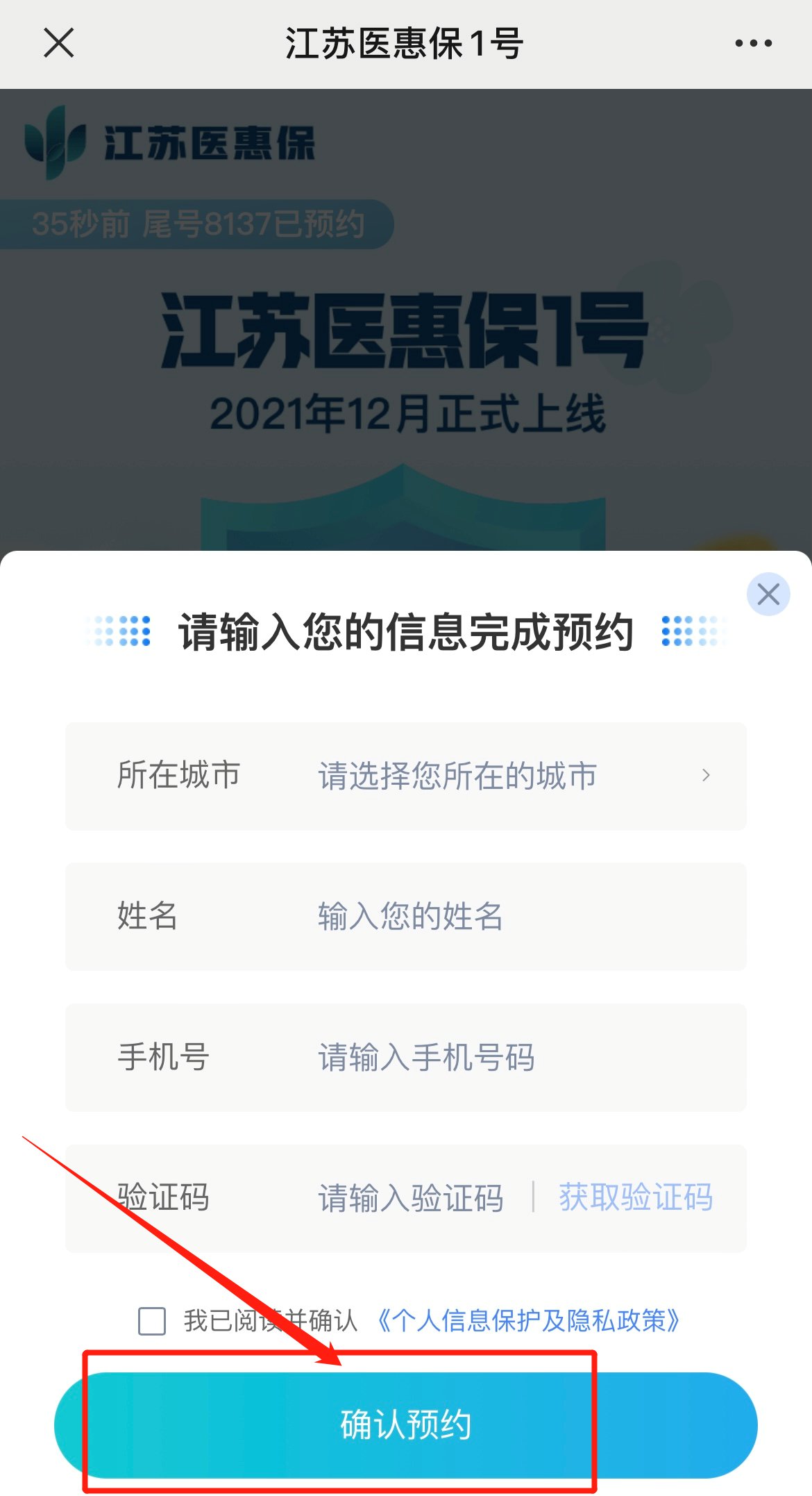 3.填写个人信息,完成预约。