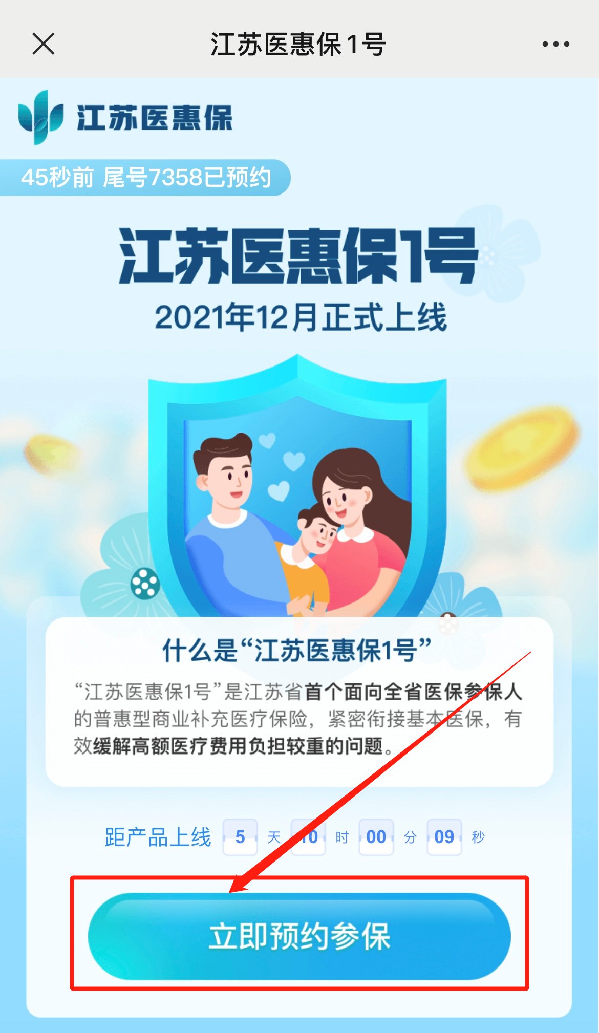 1.“江苏医惠保1号”微信公众号—“服务”—立即预约