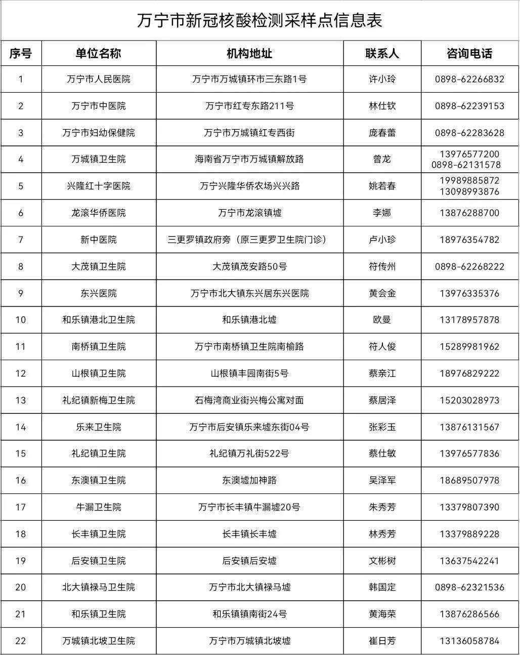 海南万宁核酸检测采样点
