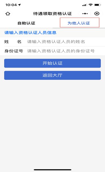 这一功能页面分为两个模块,自助认证和为他人认证。
