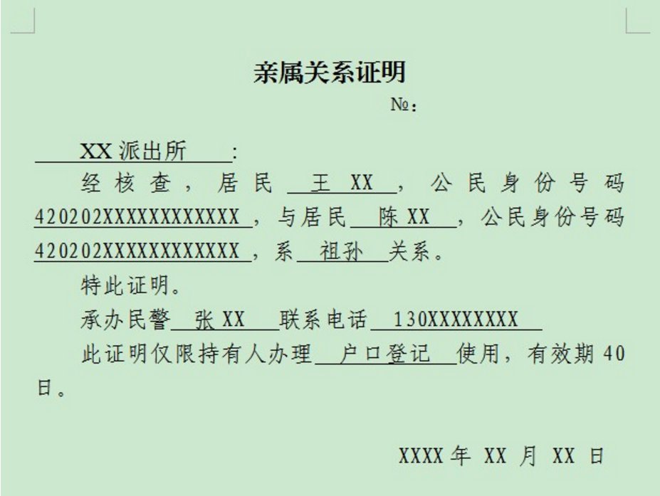 答:符合条件的大学毕业生,本人及其配偶、未成年子女可以申请落户武汉。配偶及子女随迁的,还需提供关系凭证,大致模板样图如下: