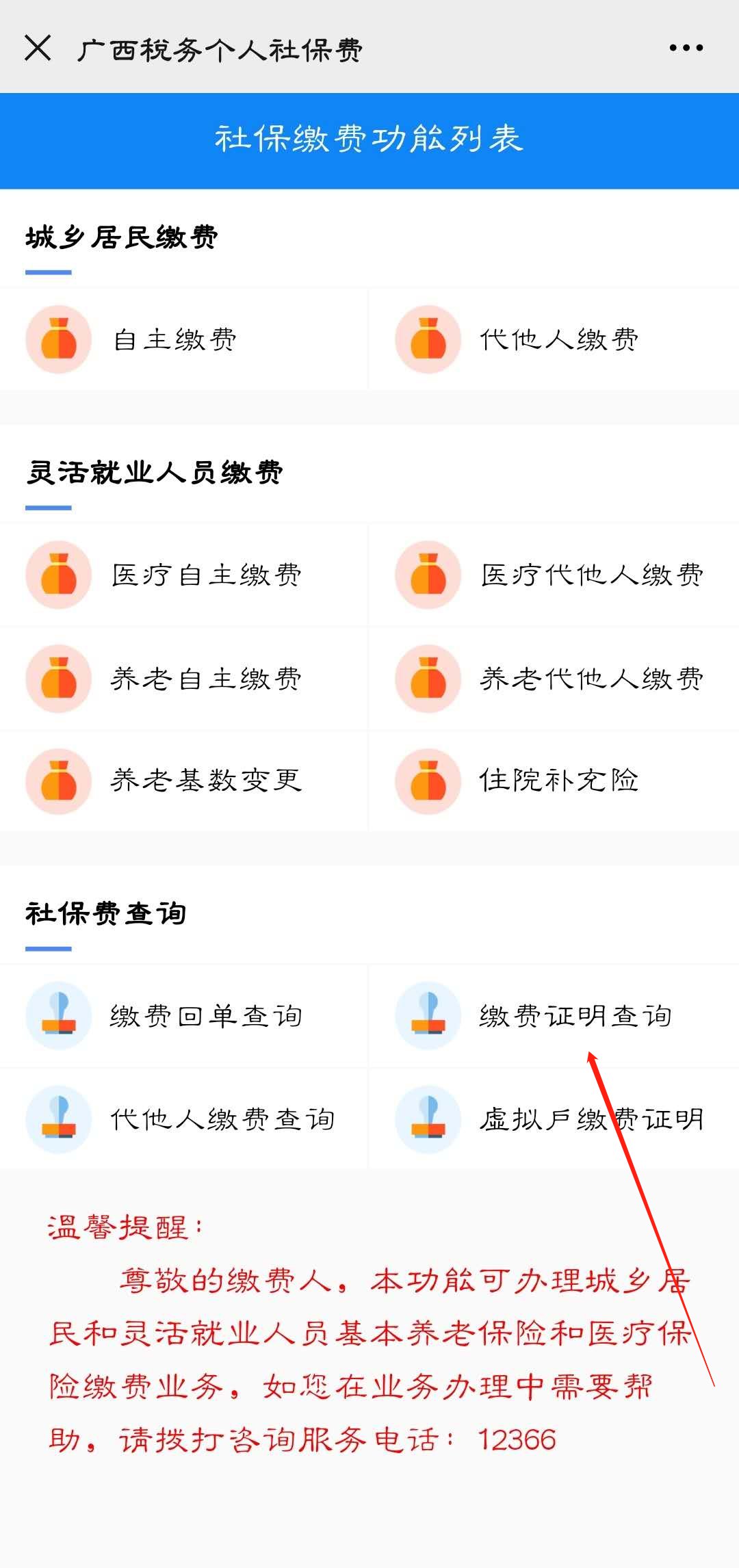 灵活就业人员缴费后4个工作日后可在“广西税务12366”公众号“办一办”->“个人缴社保费”进行查询和打印缴费凭证(除办税服务厅现金缴费和虚拟户缴费方式外)。通过社保费专用智能移动POS机缴费的,POS机小票即可作为缴费凭证。