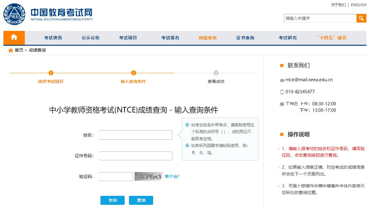 2、输入报考时的姓名和证件号码,填写验证码,点击查询按钮进行查询。