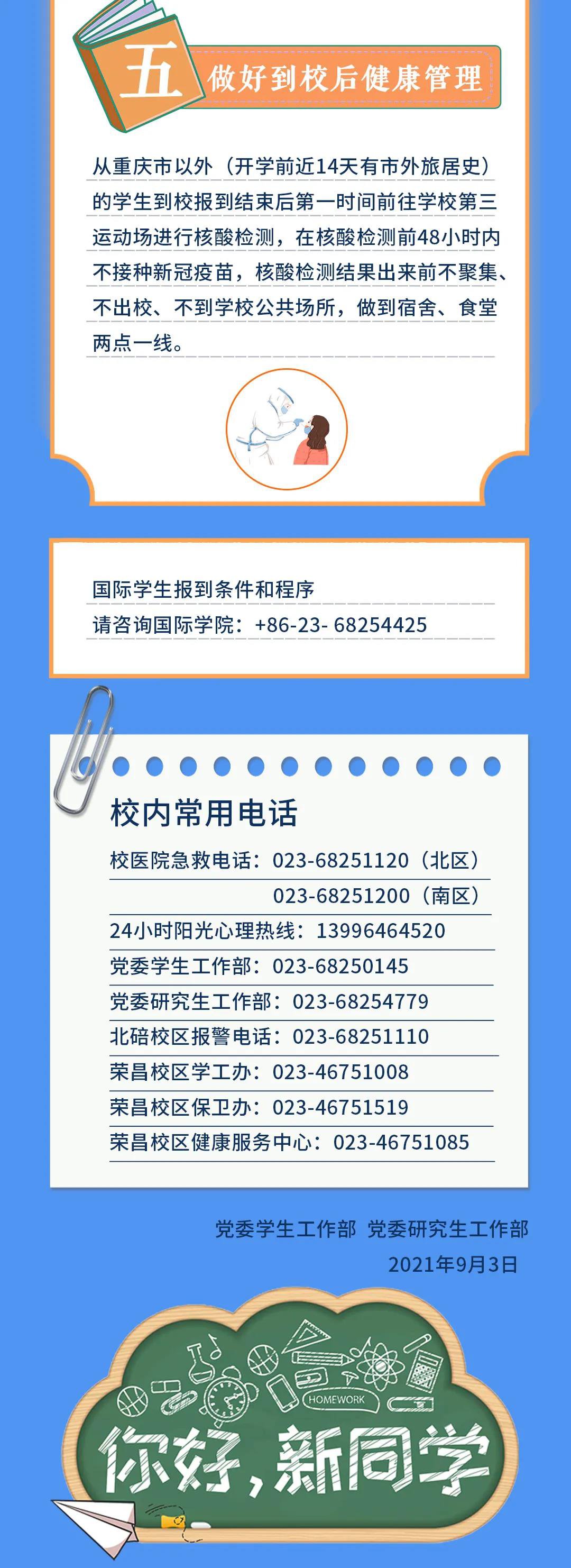 9月6日,学校严格按照疫情防控相关要求,在对返校学生开展新冠病毒核酸检测中,发现1名市外返渝学生核酸检测结果异常。后经复核和专家研判,排除新冠病毒感染,解除校园应急防控措施,全面恢复正常学习、生活与工作秩序,转为疫情常态化防控管理。