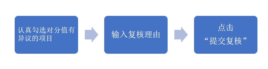 注:提交复核应一次性勾选所有有异议需要复核的分数项,请勿多次重复提交。