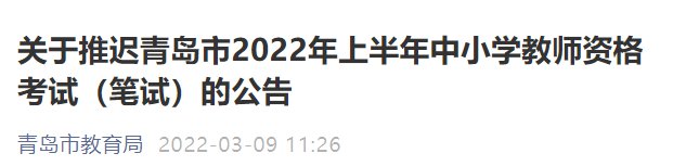 关于推迟青岛市2022年上半年中小学教师资格考试(笔试)的公告