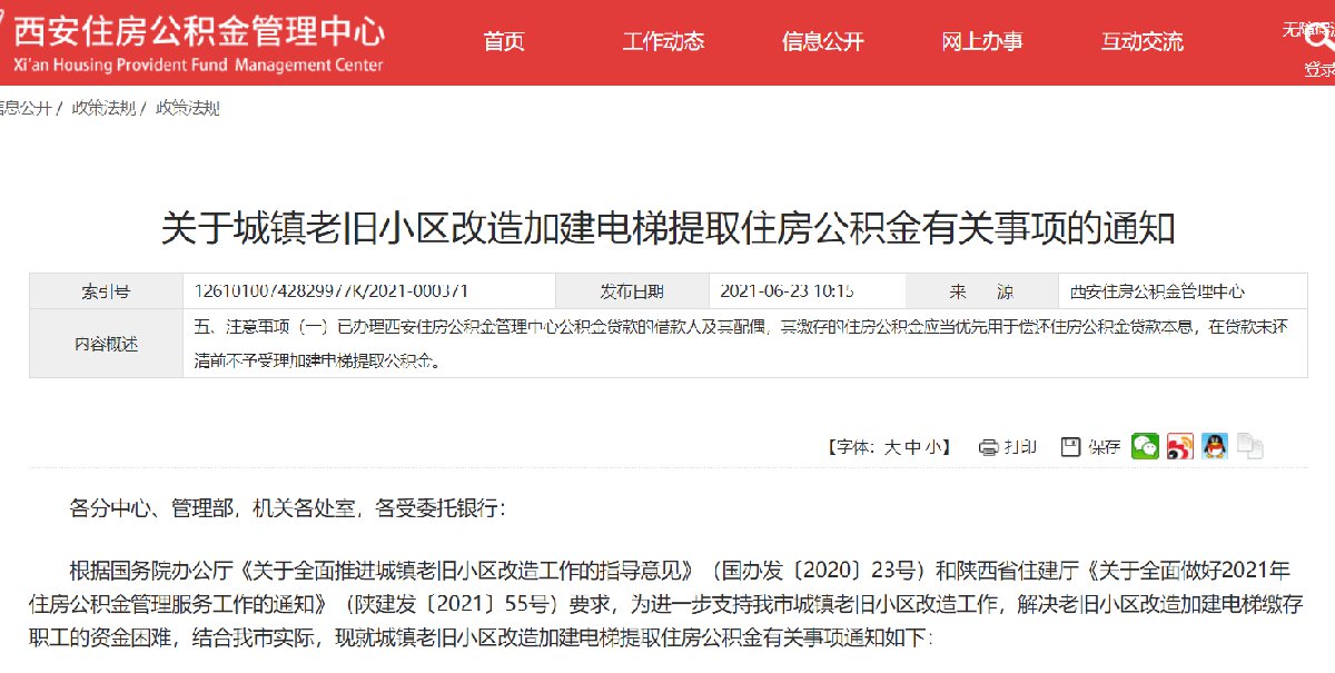 关于西安城镇老旧小区改造加建电梯提取住房公积金有关事项的通知