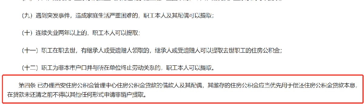 第四条已办理西安住房公积金管理中心住房公积金贷款的借款人及其配偶,其缴存的住房公积金应当优先用于偿还住房公积金贷款本息,在贷款未还清之前不得以其他任何形式申请非销户提取。