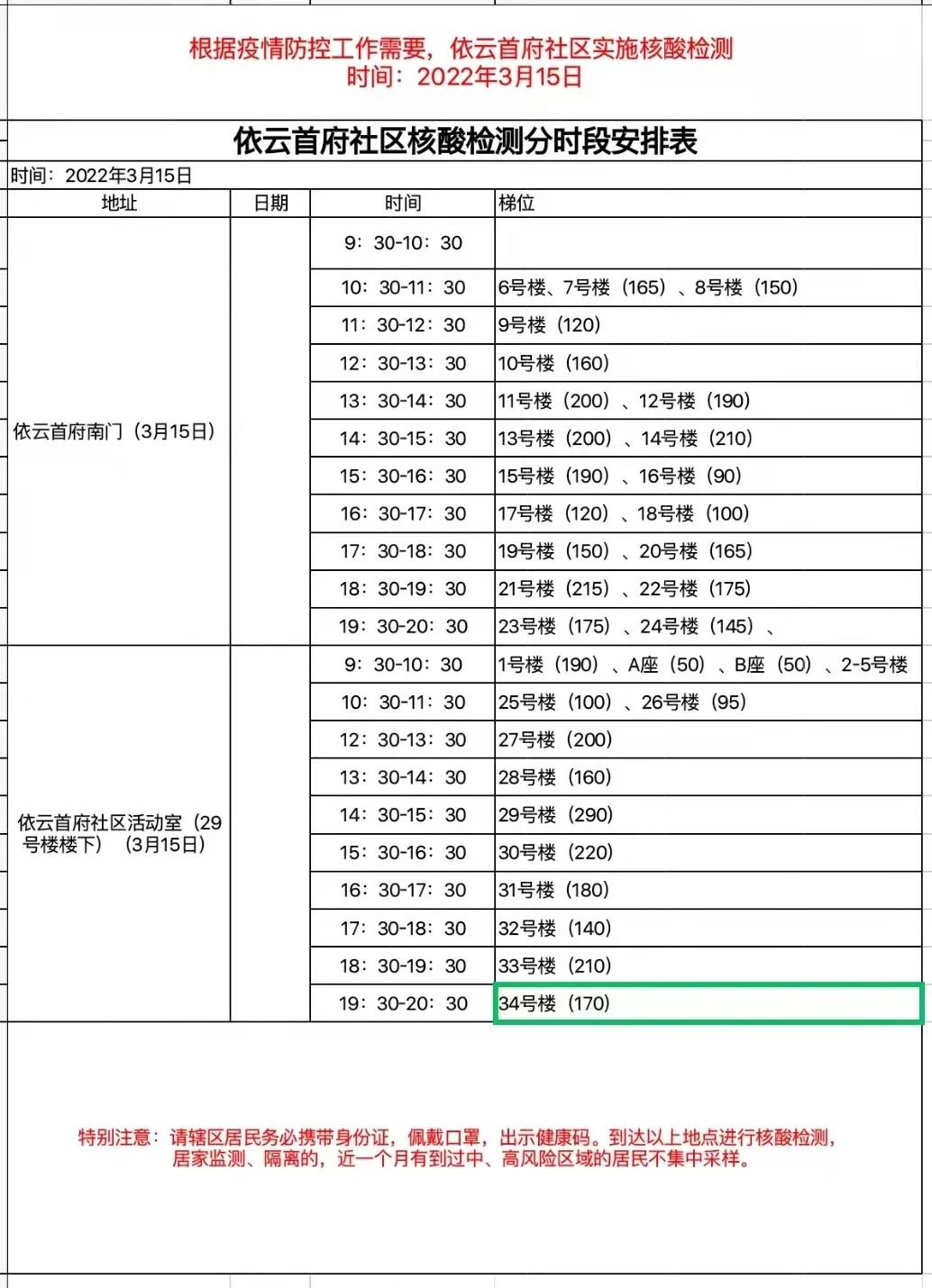 三、参加核酸检测人员,以楼为单位具体时间听社区安排。