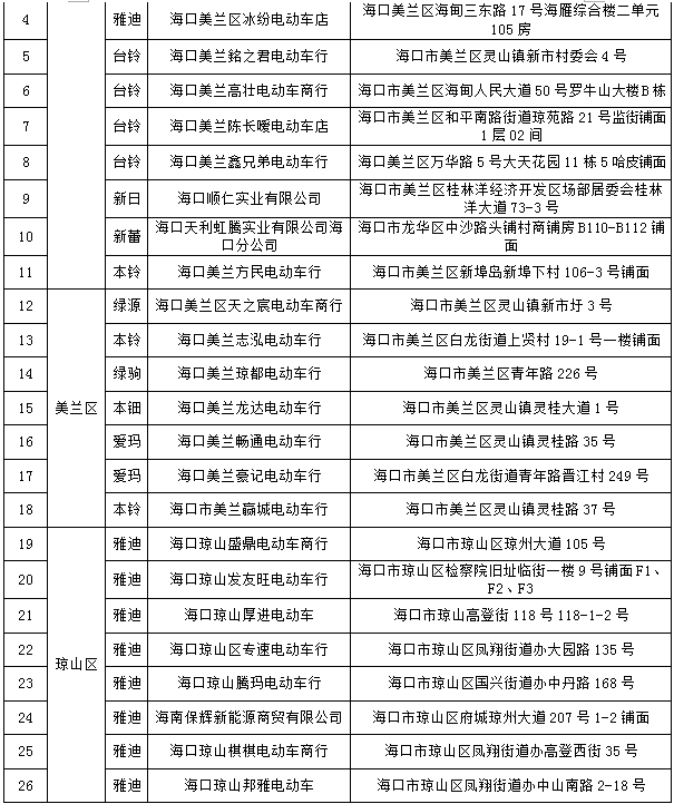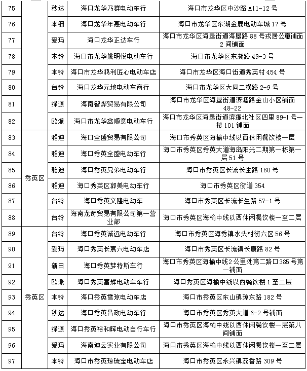 2022年1月5日(含)之后购买的符合国家新标准《电动自行车安全技术规范》(GB17761-2018),并获得CCC认证证书的电动自行车登记上牌服务网点如下: