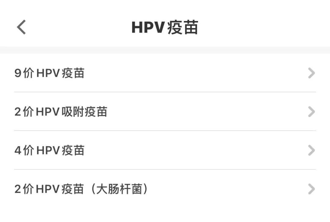 第三步:可选择2价、4价、9价疫苗;
