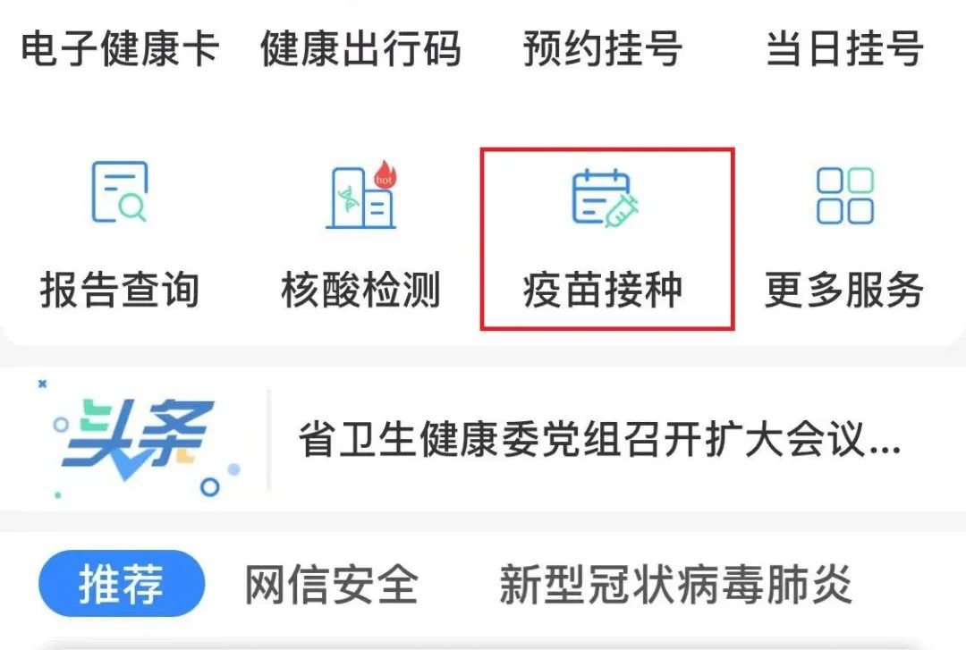 第一步:打开“健康甘肃”APP,点击「疫苗接种」;