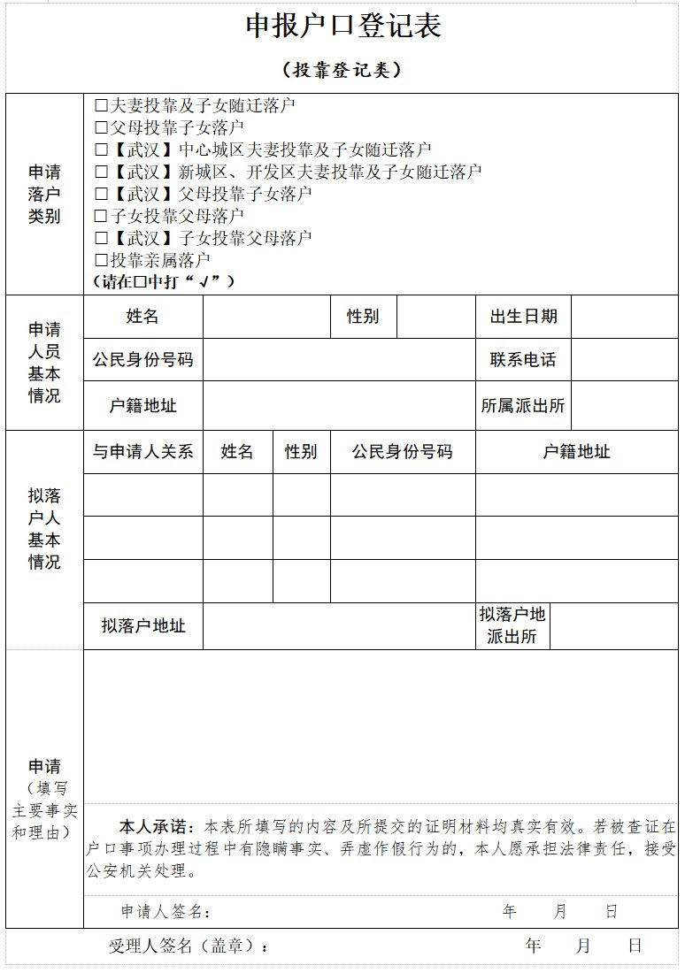 二、武汉申报户口登记表(投靠登记类)下载入口:
