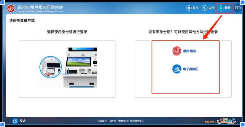 1.点击右上角的“登录”,通过身份证感应登录,也可以选择以下三种方式进行登录(福码、公安网证、支付宝电子身份证);