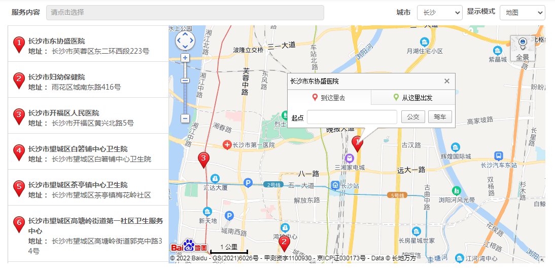 进入上方链接,进入长沙驾驶证换证体检医院地图,即可查看长沙市相关体检医院名称及地址,可就近选择。