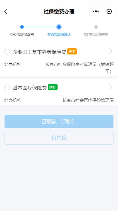 在参保信息确认页面,核实参保险种及经办机构信息是否准确,如无误,选择“已确认”进入,或选择“有异议”,查看提示信息。