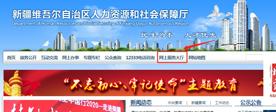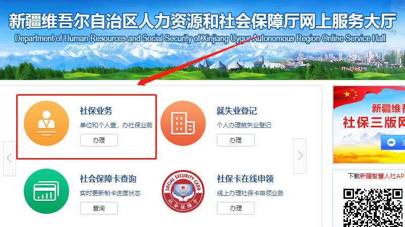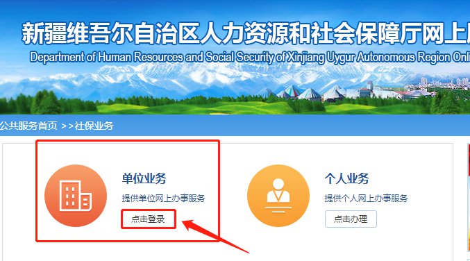 单位专员→办理登录[新疆人社网站](点击进入)→进入网上服务大厅→社保业务。
