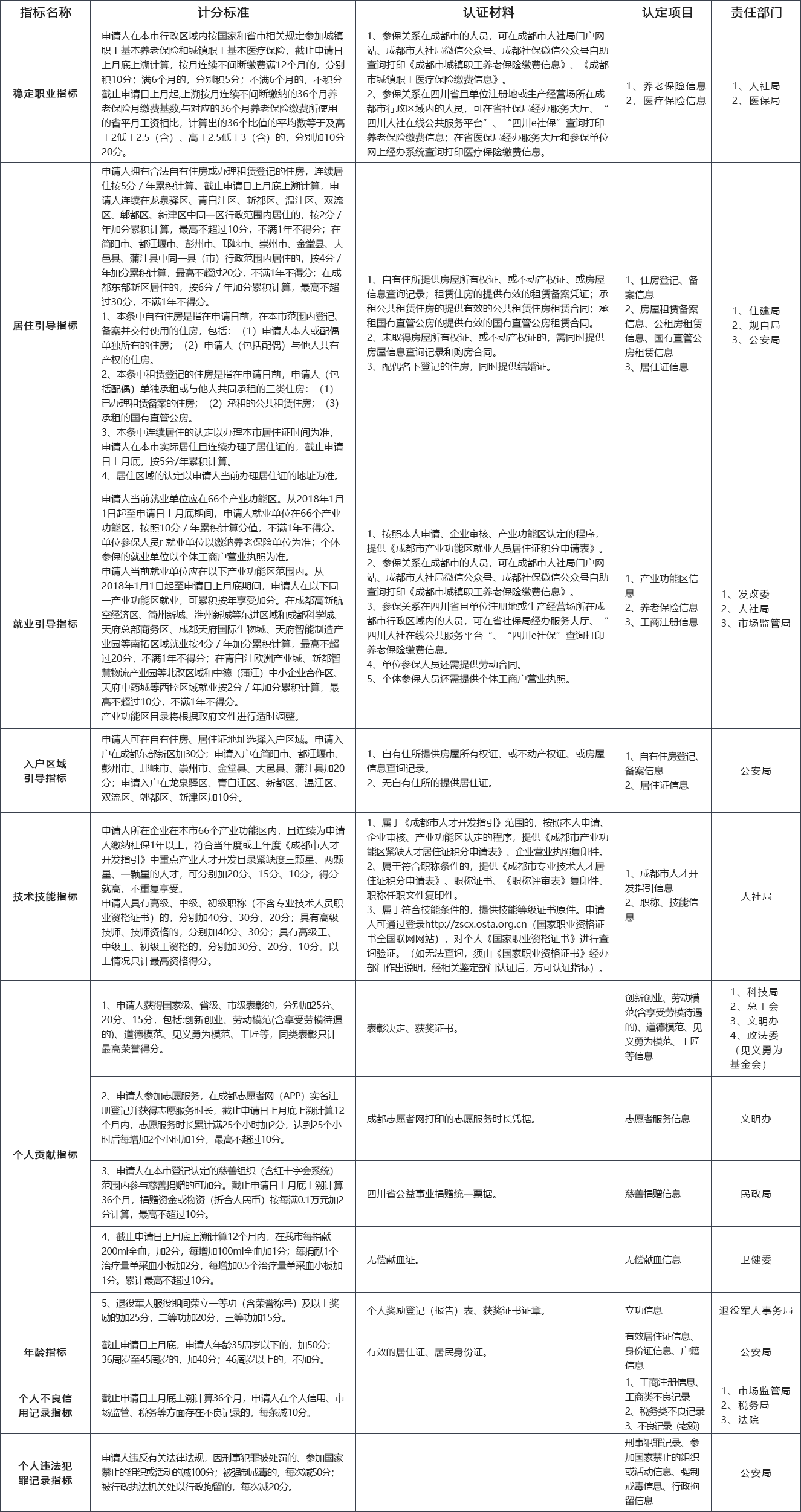 附件:成都市居住证积分管理指标体系一览表