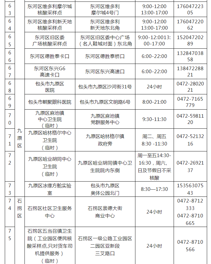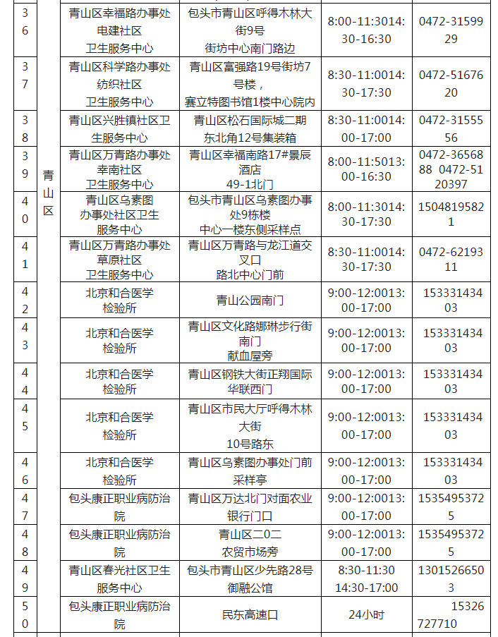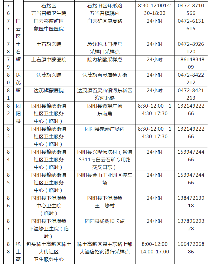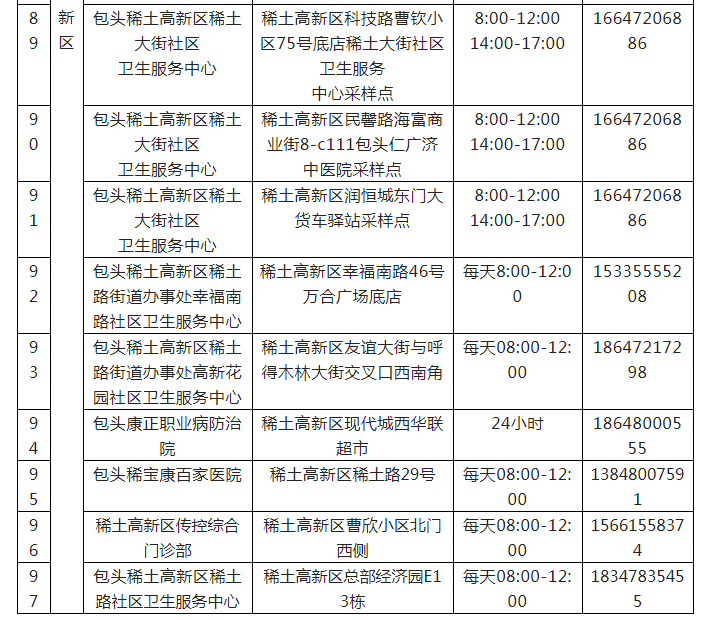 包头市核酸检测便民采样点