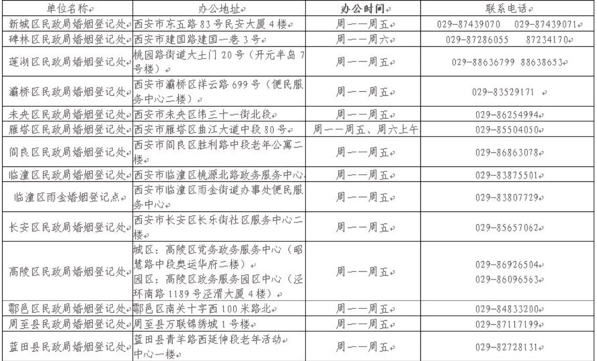 西安结婚登记处办理地点、电话