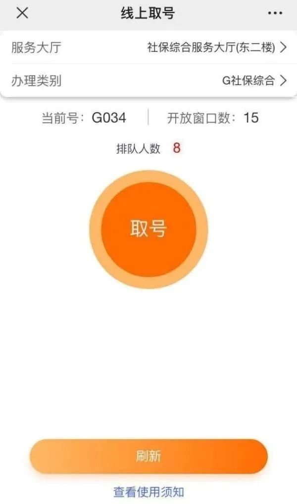 取号成功后,“南京社保”微信公众号将推送“业务办理提醒”,同时请注意服务大厅的呼叫信息,如过号需重新取号排队。
